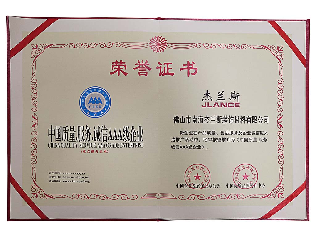 杰蘭斯裝飾材料有限公司秉承“以人為本、科技為先”的經驗理念,堅持規(guī)模化運作,規(guī)范化經營的發(fā)展思路,建立了完善的營銷網絡及高素質的銷售隊伍,擁有一支豐富經驗的設計團隊,專門配合建筑裝飾材料的深化設計及工藝構思,品牌精益求精理念,高品位的產品、良好的質量與精湛的工藝,建立了良好的口碑.